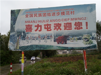走进喜力屯,一块巨大的壮、汉两种语言书写的“全国民族团结进步村,喜力屯欢迎您”映入眼帘,进村的水泥路上,尽是大果枇杷和巨峰葡萄等果树,在村口一家粉刷雪白的楼房墙面上,书写着“喜力欢迎您”字样,这就是人大代表姚守填的家。人大代表姚守填说,喜力屯共有420多人,是壮、苗、汉、瑶等民族聚居地,自进入二十一世纪以来,姚守填就思考着如何带领壮、苗、汉、瑶各民族群众共同致富。喜力屯两山环抱,是个典型的小山村,涓涓的山泉水滋润着这片土地,喜力屯由于地处山槽地,种粮食肯定比不上外面村屯,但种果树肯定比外面强,于是他就和村民刘振文、刘振武一起到外地参观学习,并在镇水果站的指导下,引进巨峰葡萄和大果枇杷,他带领家人在村边的田地种了二亩多巨峰葡萄,在岭地上种植三亩多大果枇杷。在种植过程中,他重视施放农家肥麸饼肥等有机肥,尽量不用国家明令禁止使用的农药,让所种出的水果保持纯天然。为了让所种的果树种植取得成功,他发挥作为一名村委干部和人大代表的优势,请来县、镇农技部门的技术员来给村民上技术课,推广新的果树种植技术,通过姚守填的辛勤护理,他所种出的果树三年就获得好收成,每亩除去成本,纯收入达到5000多元,一年种果创收两三万元。榜样的力量是无穷的,村民见他种果取得好收入,纷纷向他学习,人大代表姚守填及时向大家推广大果枇杷和巨峰葡萄的种植技术,并向大家提供种苗,介绍大家到镇水果站引进良种果苗种植,村里果树种植很快发展到500多亩,村里80多户家家发展水果种植。