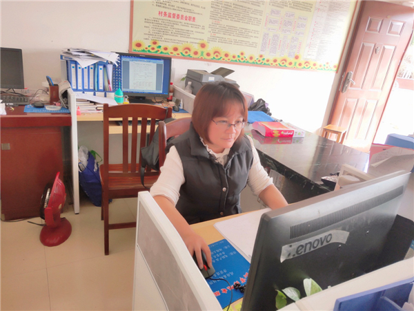 初见江梅,是在村委的政务中心桌台里。清爽利落的短发下,架着黑框眼镜,沉着内敛,她有条不紊的在电脑上处理材料,不知道的还以为她是村委普通工作人员,比竟在人们的印象中,村委主任的形象大多是老成持重,上了年纪的男同志,没有想到这么年轻的女同志居然就当了村委主任。