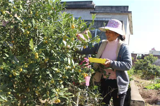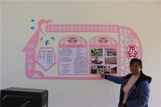 随着水果合作社社员的增加,梁丽萍思忖:种果必须要有技术,没有技术,产量不高,收入不佳,必然失败。为此,梁丽萍邀请了有丰富砂糖桔种植经验的荔浦老板参与指导种植,采取“公司+合作社”的模式运行,开展种植培训,提高种植水平。2014年,她开始尝试着租用一些长期外出务工人家的闲置地,扩大种植砂糖桔面积达60多亩。因技术到位,果树长势喜人,丰收在望。村里的群众纷纷跑来向她讨教管护技术,她则毫不吝啬,把所学到的种植技术与村民分享。2015年,峰贵水果合作社已发展新社员118户,其中贫困户61户,种植水果2200亩。2017年峰贵屯全年水果销售产值2500多万元,人均纯收入2.2万元。