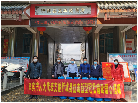 林家华代表向忻城县捐赠的防疫医疗物资。