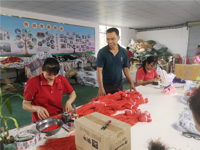 受新冠肺炎疫情影响,扶贫车间已于2020年2月22日全面复产复工,政府为车间所有员工发放防疫补助9200元,发放贫困户员工的在岗务工补助8200元,为扶贫车间和员工缓解因疫情带来的影响和冲击。8月18日将在扶贫车间举办第三届员工技能竞赛,竞赛优胜者,给予奖励,激发贫困户勤劳致富的内生动力。扶贫车间妇女之家成立以来,为深入推进巾帼脱贫行动,不断提升妇女创业、就业能力,积极鼓励广大妇女到扶贫车间就业,发挥妇女同胞自身的优势,发扬“巾帼不让须眉”的拼劲和干劲。覃振红表示,各项扶贫政策加持,是为企业稳健发展“雪中送炭”,是为人民群众对美好生活向往“添砖加瓦”,更是为打赢脱贫攻坚战“保驾护航”。