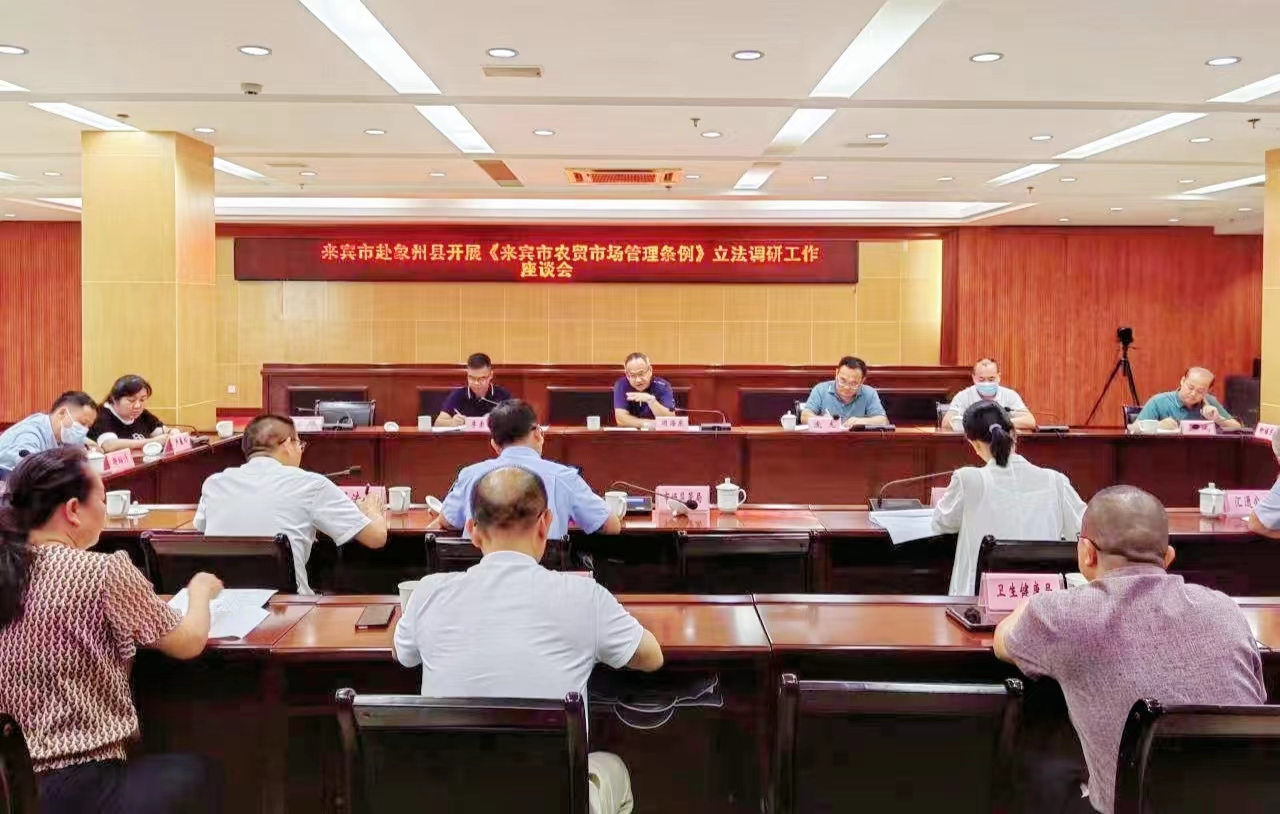 6月22日,市人大常委会副主任闭海东在象州县参加《3654687_英国365bet日博_0755 36553288农贸市场管理条例》起草调研座谈会,听取条例起草调研组工作情况汇报,并对条例起草工作予以指导。
