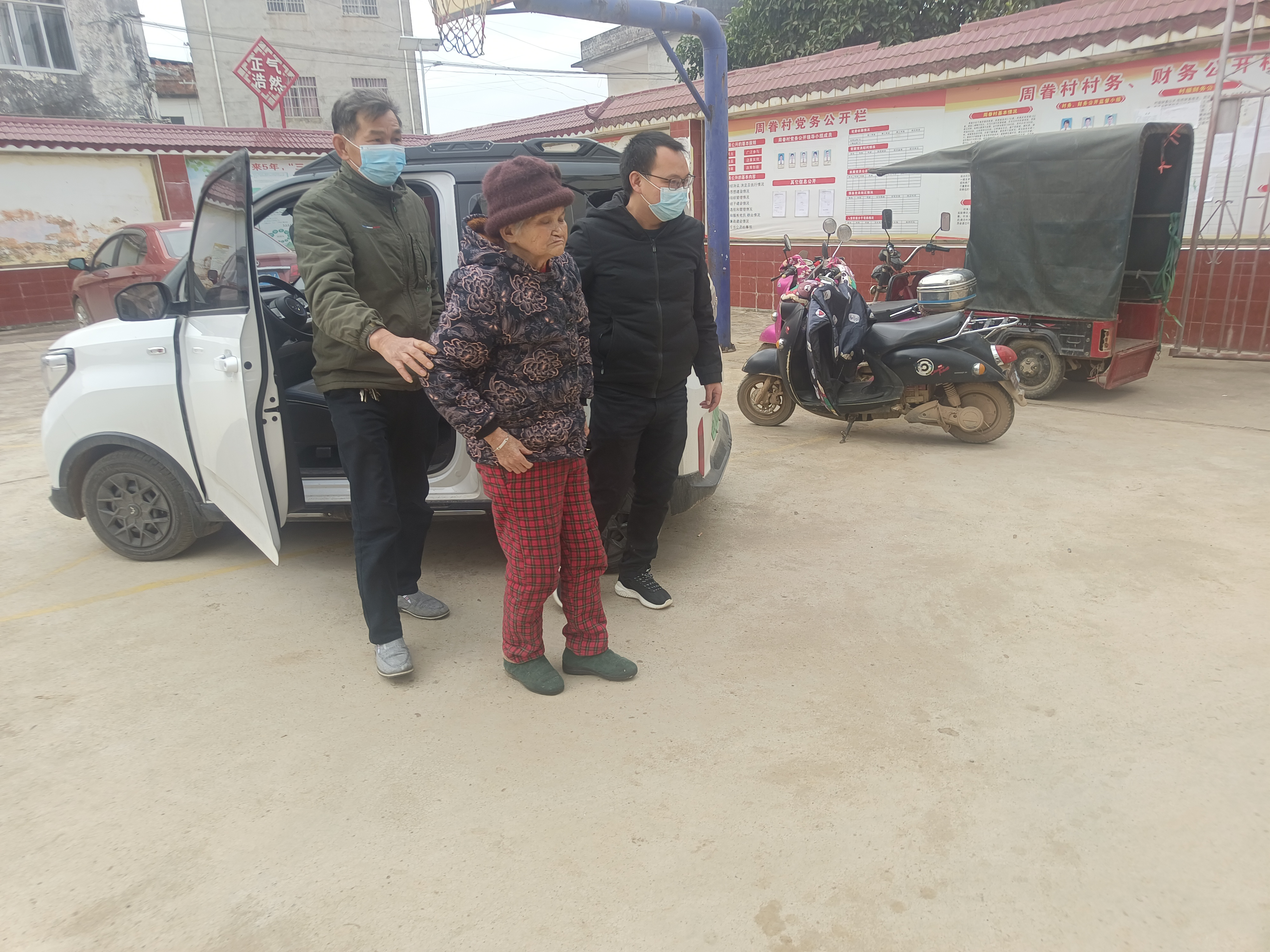 人大代表接送行动不便的老人到卫生院接种新冠疫苗。