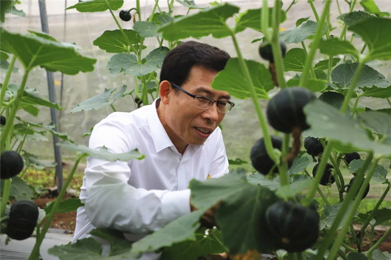 赵睿在瓜棚调研贝贝南瓜。